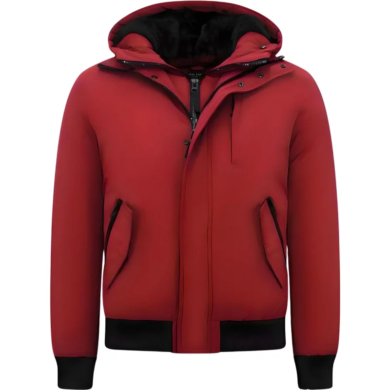 Gewatteerde Korte Jas Heren - 7015 - Rood - Productinformatie: Gewatteerde korte jas heren Heeft een exclusieve rode kleur Comfortabel en warm model, perfect voor de winter Kort model met een slim fit pasvorm Het materiaal bestaat uit 65% polyester en 35% katoen De voering bestaat uit 100% polyester Heeft een rits met drukknopen als sluiting Het model heeft vierjaszakken en één binnenzak De capuchon is niet afritsbaar Voorgedrukte knopen / rits aan capuchon.Zelf uit te breiden met bontkraag (wordt niet meegeleverd) Breng hem naar de stomerij voor een maximale levensduur Verkrijgbaar in de maten S – M – L – XL