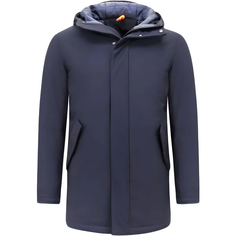 Luxe Halflange Parka Heren met Capuchon - Blauw - Specificaties:- Luxe Halflange Parka Heren met Capuchon- Kleur: Zie afbeelding- Lengte: Lang- Pasvorm: Getailleerd Slim fit- Sluiting: Knoop- Materiaal: 76% Polyester, 24% Spandex- Zakken: 2 Jaszakken, 1 binnenzaken- Seizoen: Winter- Wasvoorschrift: Machinewas 30 graden / Stomerij- Beschikbare Maten: XS - S - M - L - XL