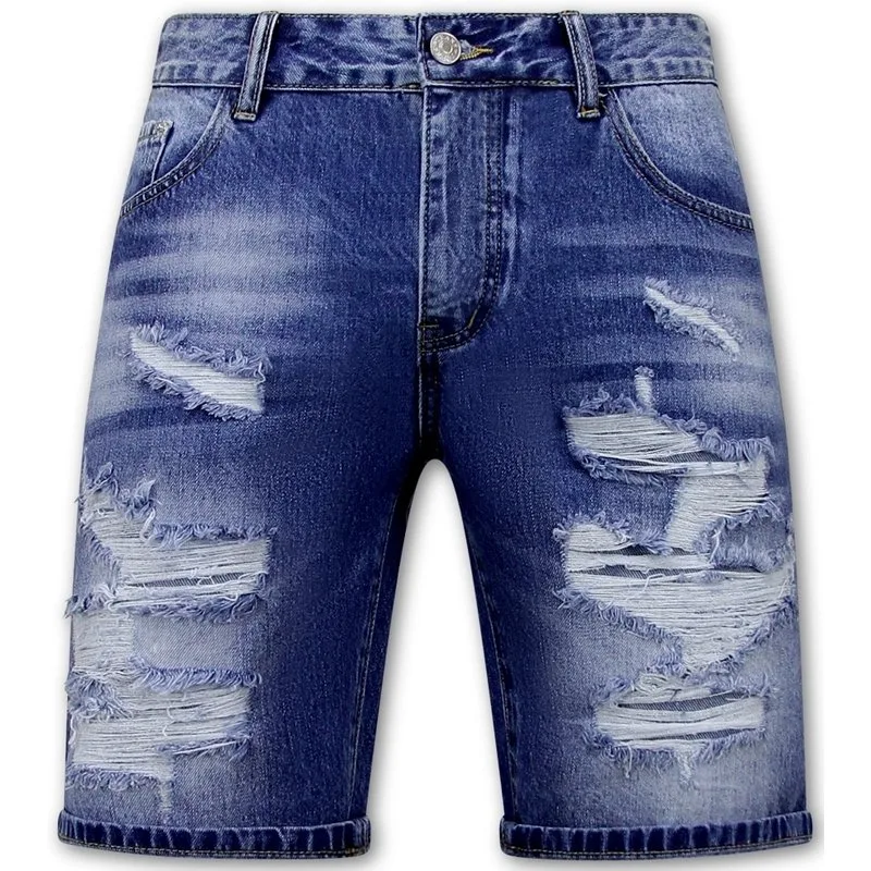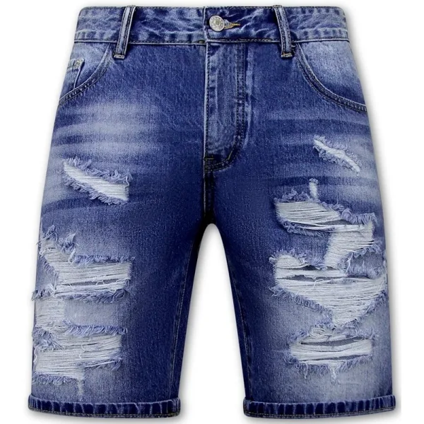 Exclusieve spijkerbroek met gaten voor heren met div. specificaties. Deze blauwe korte broek heeft een uitstekende afwerking en een Slim-Fit pasvorm. - Specificaties:- Korte Spijkerbroek met Gaten- Denim Short - Artikelcode: RJ-953- Kleur: Zie afbeelding- Seizoen: Zomer- Pasvorm: Slim Fit- Sluiting: Knopen- Patroon: Ribbed- Materiaal: 100% Katoen, geen stretch- Weefsel: Denimweefsel - Zakken: 2 Voorzakken en 2 Achterzakken- Wasvoorschrift: Machinewas 30 graden (Niet in de droger)- Beschikbare maten: 28 - 30 - 32 - 34 - 36 - 38