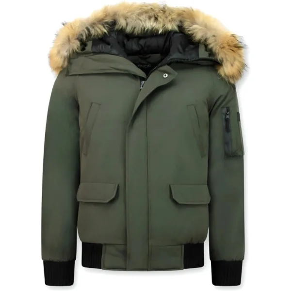 Met deze korte groene heren winterjas met bontkraag straalt u één en al rust uit. Dat is namelijk waar de kleur groen voor staat. Groene winterjassen zijn stijlvol, gemakkelijk te combineren en laten ook zien dat u een betrouwbaar type bent. - Specificaties:- Korte Heren Winterjas Army - Groen Winterjas- Kleur: Groen- Artikelcode: PI-7005G en 8821G- Lengte: Kort- Pasvorm: Slim Fit- Sluiting: Rits met druk knopen- Het materiaal bestaat uit 65% katoen en 35% polyester- De voering bestaat uit 100% polyester- Zakken: 4 Jaszakken, één binnenzak- Seizoen: Winter- Capuchon: Niet afritsbaar- Standaard Bontkraag: Groot Echte Bontkraag - Bontkraag: Afhaalbaar- Wasvoorschrift: Stomerij- Beschikbare Maten: S - M - L - XL