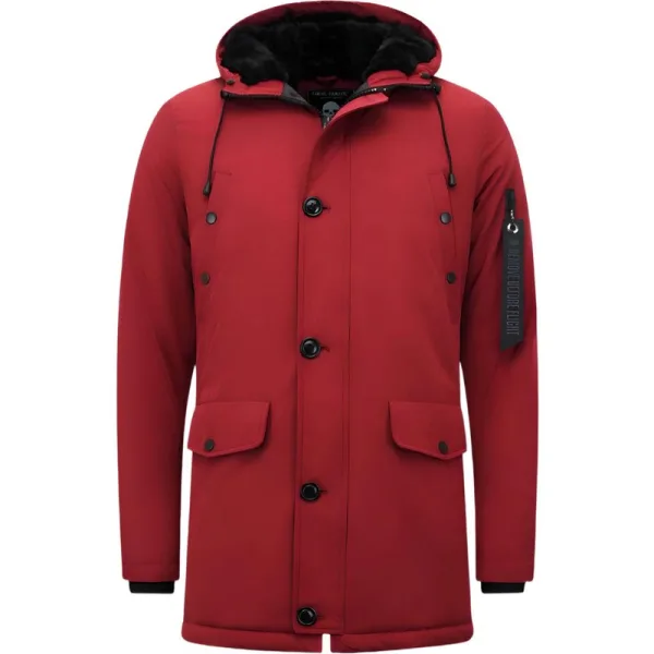 Lange Heren Jas - 7103 - Rood - Productinformatie: Lange heren jas Heeft een exclusieve rode kleur Comfortabel en warm model, perfect voor de winter Heeft een slimfit fit pasvorm Het materiaal bestaat uit katoen, PU De voering bestaat uit 65% katoen en 35% PU Heeft een rits met knopen als sluiting Het model heeft 4 jaszakken en 1 binnenzakken De capuchon is niet afritsbaar Voorgedrukte knopen / rits aan capuchon.Zelf uit te breiden met bontkraag (wordt niet meegeleverd) Breng hem naar de stomerij voor een maximale levensduur Kan ook gewassen worden op 30 graden Verkrijgbaar in de maten S – M – L – XL