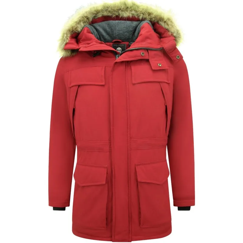 Met deze prachtige rode parka jas voor heren met bontkraag komt u de herfst en de winter wel door. Deze jas is gemaakt van zeer hoogwaardige kwaliteit Polyester. Door de slim fit pasvorm sluit dit goed aan op uw lichaam. – Productinformatie: Heren parka jas met imitatie bontkraag De rode kleur maakt deze jas een uitdagend model Met de kleur rood valt u zeker op Comfortabel en warm model, perfect voor de winter Lang model met een slim fit pasvorm Het materiaal bestaat uit 65% katoen en 35% polyester De voering bestaat uit 100% polyester Heeft een rits met drukknopen als sluiting Het model heeft twee jaszakken één binnenzak De capuchon is niet afritsbaar De bontkraag is wel afritsbaar Breng hem naar de stomerij voor een maximale levensduur