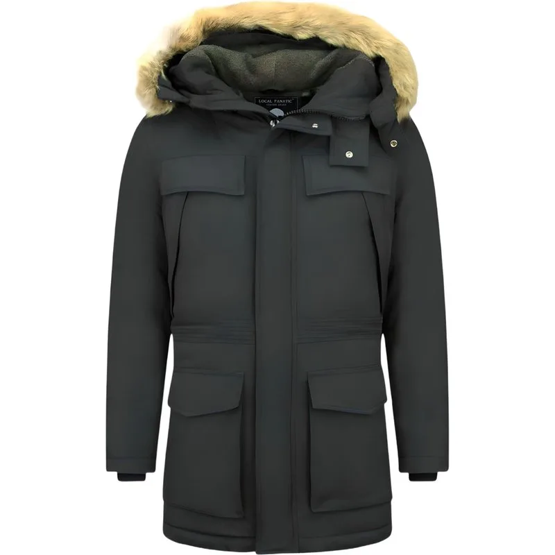 Met deze gemakkelijk te combineren zwarte lange heren parka zit u altijd goed. U kunt hem namelijk altijd aantrekken en u hoeft niet na te denken over de rest van uw kleding. Is dat niet makkelijk? Pak hem van de kapstok en trek hem aan. - Productinformatie: Lange parka jas met bontkraag voor heren Heeft een mooie donkere zwarte kleur Zwarte jassen zijn gemakkelijk te stijlen Comfortabel en warm model, perfect voor de winter Lang model met een slim fit pasvorm Het materiaal bestaat uit 80% polyester en 20% katoen De voering bestaat uit 100% polyester Heeft een rits met drukknopen als sluiting Het model heeft twee jaszakken één binnenzak Heeft een mooie imitatie bontkraag De capuchon is niet afritsbaar De bontkraag is wel afritsbaar Breng hem naar de stomerij voor een maximale levensduur Verkrijgbaar in de maten S – M – L –