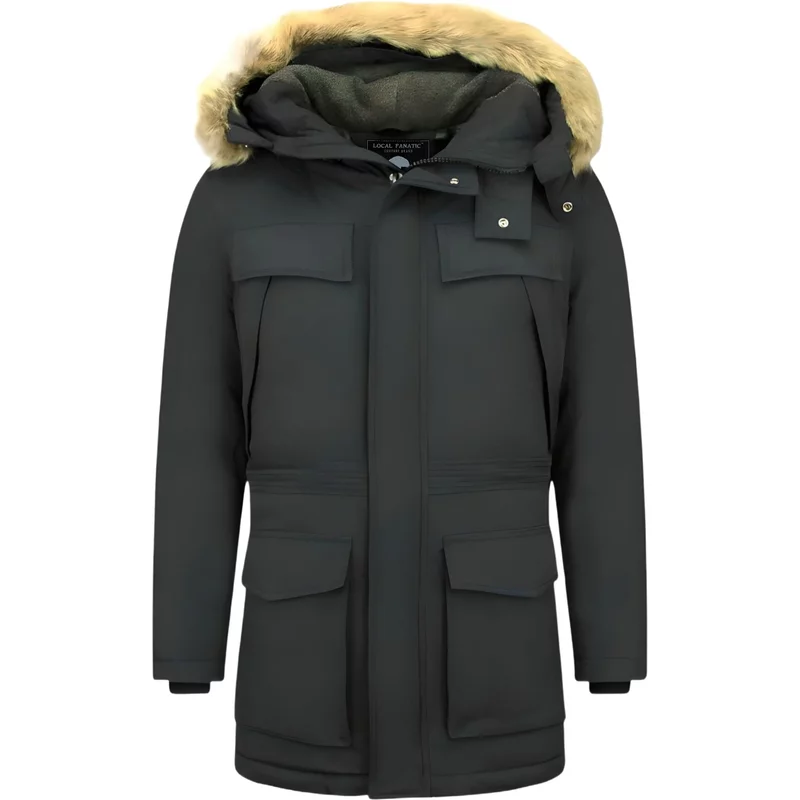 Met deze gemakkelijk te combineren zwarte lange heren parka zit u altijd goed. U kunt hem namelijk altijd aantrekken en u hoeft niet na te denken over de rest van uw kleding. Is dat niet makkelijk? Pak hem van de kapstok en trek hem aan. – Productinformatie: Lange parka jas met bontkraag voor heren Heeft een mooie donkere zwarte kleur Zwarte jassen zijn gemakkelijk te stijlen Comfortabel en warm model, perfect voor de winter Lang model met een slim fit pasvorm Het materiaal bestaat uit 65% katoen en 35% polyester De voering bestaat uit 100% polyester Heeft een rits met drukknopen als sluiting Het model heeft twee jaszakken één binnenzak Heeft een mooie imitatie bontkraag De capuchon is niet afritsbaar De bontkraag is wel afritsbaar Breng hem naar de stomerij voor een maximale levensduur