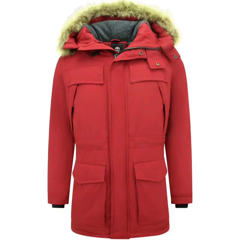 Met deze prachtige rode parka jas voor heren met bontkraag komt u de herfst en de winter wel door. Deze jas is gemaakt van zeer hoogwaardige kwaliteit Polyester. Door de slim fit pasvorm sluit dit goed aan op uw lichaam. - Productinformatie: Heren parka jas met imitatie bontkraag De rode kleur maakt deze jas een uitdagend model Met de kleur rood valt u zeker op Comfortabel en warm model, perfect voor de winter Lang model met een slim fit pasvorm Het materiaal bestaat uit 80% polyester en 20% katoen De voering bestaat uit 100% polyester Heeft een rits met drukknopen als sluiting Het model heeft twee jaszakken één binnenzak De capuchon is niet afritsbaar De bontkraag is wel afritsbaar Breng hem naar de stomerij voor een maximale levensduur Verkrijgbaar in de maten S – M – L – XL - XXL