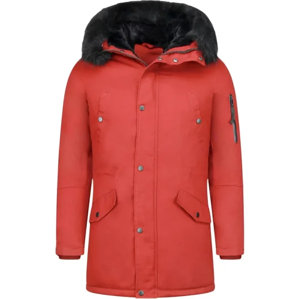 Dit is een lange heren winterjas met faux bontkraag in het rood. Een lekkere warme goed gevoerde lange jas die veel comfort bied tijdens de winter. Dit is één van de populairdere keuzes, de rode kleur maakt het model gedurfd! - Productinformatie: Heren parka jas lang Heeft een faux bontkraag Heeft een exclusieve rode kleur Comfortabel en warm model, perfect voor de winter Lang model met een slim fit pasvorm Het materiaal bestaat uit katoen PU De voering bestaat uit 65% katoen 35% PU Heeft een rits met knopen als sluiting Het model heeft 4 jaszakken en 1 binnenzakken De capuchon is niet afritsbaar De faux bontkraag is wel afritsbaar Breng hem naar de stomerij voor een maximale levensduur Kan ook gewassen worden op 30 graden Verkrijgbaar in de maten S – M – L – XL