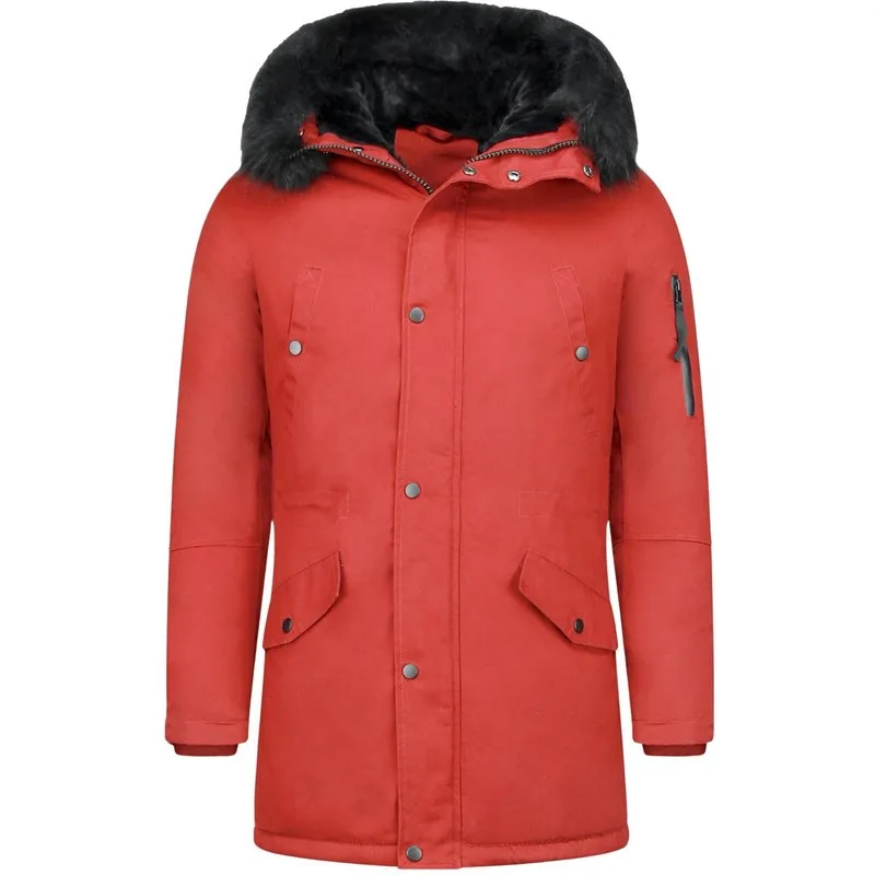 Dit is een lange heren winterjas met faux bontkraag in het rood. Een lekkere warme goed gevoerde lange jas die veel comfort bied tijdens de winter. Dit is één van de populairdere keuzes, de rode kleur maakt het model gedurfd! - Productinformatie: Heren parka jas lang Heeft een faux bontkraag Heeft een exclusieve rode kleur Comfortabel en warm model, perfect voor de winter Lang model met een slim fit pasvorm Het materiaal bestaat uit katoen PU De voering bestaat uit 65% katoen 35% PU Heeft een rits met knopen als sluiting Het model heeft 4 jaszakken en 1 binnenzakken De capuchon is niet afritsbaar De faux bontkraag is wel afritsbaar Breng hem naar de stomerij voor een maximale levensduur Kan ook gewassen worden op 30 graden Verkrijgbaar in de maten S – M – L – XL