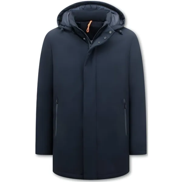 Nette Winterjas Heren met Afritsbare Capuchon - 8766 - Blauw - Specificaties:- Nette Winterjas Heren met Afritsbare Capuchon- Kleur: Zie afbeelding- Lengte: Lang- Pasvorm: Getailleerd Slim fit- Sluiting: Knoop / Rits- Materiaal: 100% Polyester- Zakken: 2 Jaszakken, 1 binnenzaken- Seizoen: Winter- Wasvoorschrift: Machinewas 30 graden / Stomerij- Beschikbare Maten: XS - S - M - L - XL