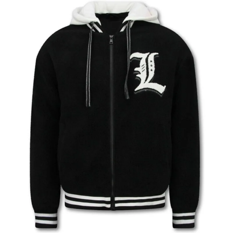Oversized Baseball Jacket - Teddy Jas Heren met Capuchon - Tussenjas Heren - 537 - Zwart - Specificaties:- Oversized Baseball Jacket - Teddy Jas Heren met Capuchon - Lengte: Kort / Oversized- Pasvorm: Los Fit / Oversized- Patroon: Print, Applicaties- Sluiting: Rits- Materiaal: 100% Polyester- Zakken: 2 Jaszakken en Binnenzak- Seizoen: Winter / Herfst- Wasvoorschrift: Machinewas 30 graden / Stomerij- Beschikbare maten: S - M - L - XL - XXL