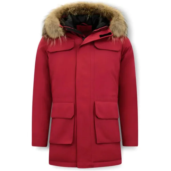 Een parka winterjas met een grote bontkraag in het rood. De grote bontkraag valt lekker op en geeft u extra comfort. Dit model sluit heerlijk aan op uw lichaam door de slim fit pasvorm en creëert een stijlvolle look. - Productinformatie: Parka Heren Winterjas Rood Heeft een grote echte bontkraag Heeft een mooie rode kleur Comfortabel en warm model, perfect voor de winter Lang model met een slim fit pasvorm Het materiaal bestaat uit polyester De voering bestaat uit 40% polyester 60% katoen Heeft een rits als sluiting Het model heeft 4 jaszakken en een binnenzakken De capuchon is niet afritsbaar De grote bontkraag is wel afhaalbaar Breng hem naar de stomerij voor een maximale levensduur Verkrijgbaar in de maten XS – S – M – L – XL Let op: De bontkraag is een natuurproduct en hierdoor heeft