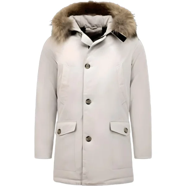Een echte winterjas voor heren met een extra grote bontkraag in het beige. De extra grote bontkraag valt lekker op en geeft u extra warmte en comfort. Dit model sluit heerlijk aan op uw lichaam door de slim fit pasvorm en creëert een stijlvolle look. - Productinformatie: Parka Winterjas Heren Heeft een Grote echte bontkraag Heeft een mooie beige kleur Comfortabel en warm model, perfect voor de winter Lang model met een slim fit pasvorm Het materiaal bestaat uit polyester De voering bestaat uit 40% polyester 60% katoen Heeft een rits met knopen als sluiting Het model heeft 4 jaszakken en een binnenzakken De capuchon is niet afritsbaar De bontkraag is wel afhaalbaar Breng hem naar de stomerij voor een maximale levensduur Kan ook gewassen worden op 30 graden Verkrijgbaar in de maten XS – S – M – L – XL