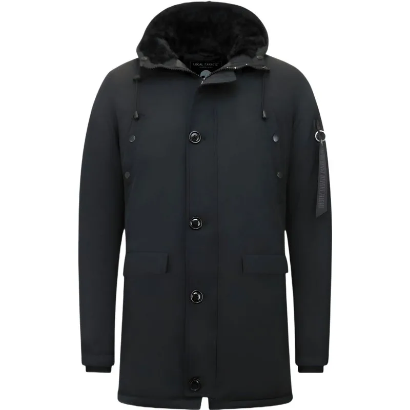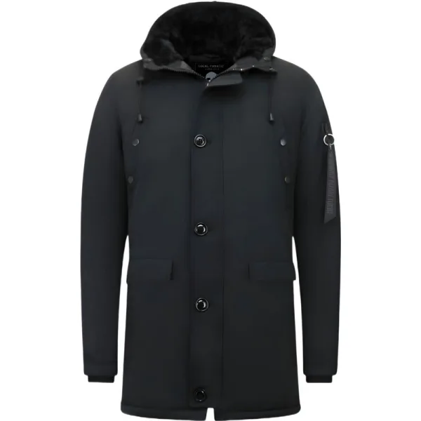 Heren Winterjassen Lang - 7103 -Zwart - Productinformatie: Heren winterjas jas lang met capuchon Heeft een klassieke zwarte kleur Comfortabel en warm model, perfect voor de winter Lang model met een slimfit pasvorm Het materiaal bestaat uit polyester De voering bestaat uit 65% katoen 35% PU Heeft een rits met knopen als sluiting Het model heeft 4 jaszakken en 1 binnenzakken De capuchon is niet afritsbaar Voorgedrukte knopen / rits aan capuchon.Zelf uit te breiden met bontkraag (wordt niet meegeleverd) Breng hem naar de stomerij voor een maximale levensduur Kan ook gewassen worden op 30 graden Verkrijgbaar in de maten S – M – L – XL