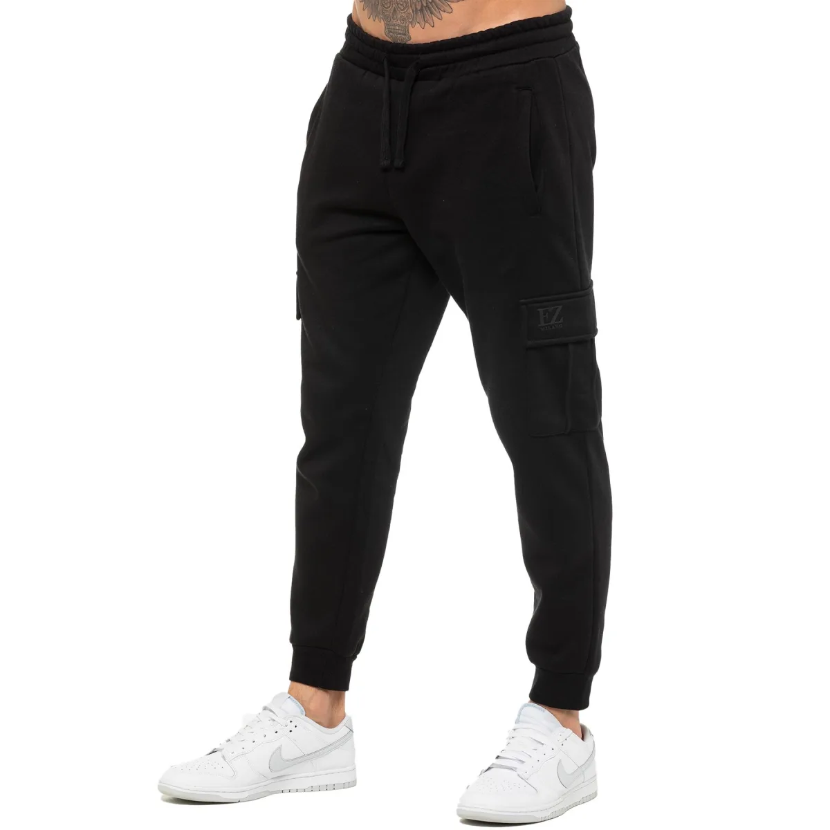 Enzo heren Regular Fit Cargo Joggers. Voorzien van 2 steekzakken aan de zijkant, 2 Cargo zakken, enkele achterzak. Geborstelde binnenkant fleece. Elastische tailleband met verstelbaar koord. Enkel met manchet. Voorzien van EZ logo.