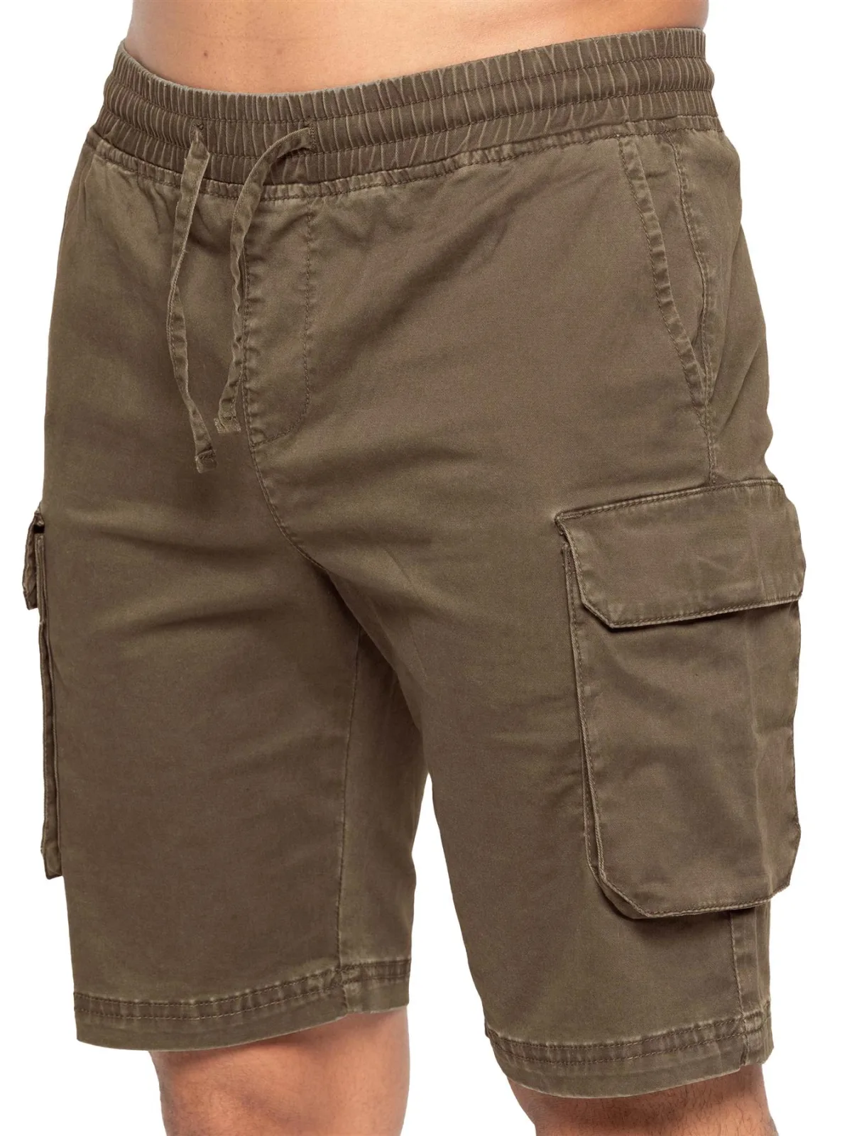 Enzo Heren Cargo Stretch Shorts. Elastische Tailleband met Verstelbaar Koord. 5-Zakkenontwerp. 2 Zijzakken, 2 Cargo Zakken met Klittenbandsluiting. Enkel Achterzak met Paspel. Middelhoge Taille, Regular Fit Shorts.