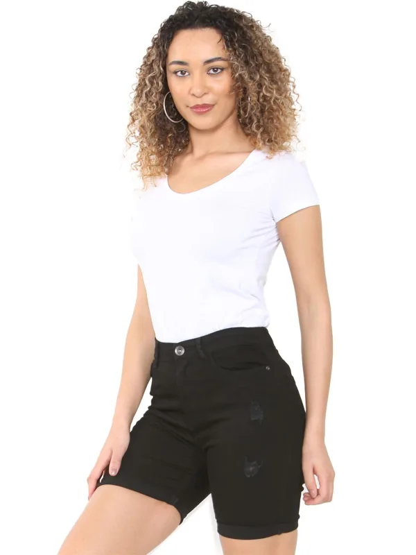 Enzo | Dames Ripped Denim Shorts – Zwart Prijzen