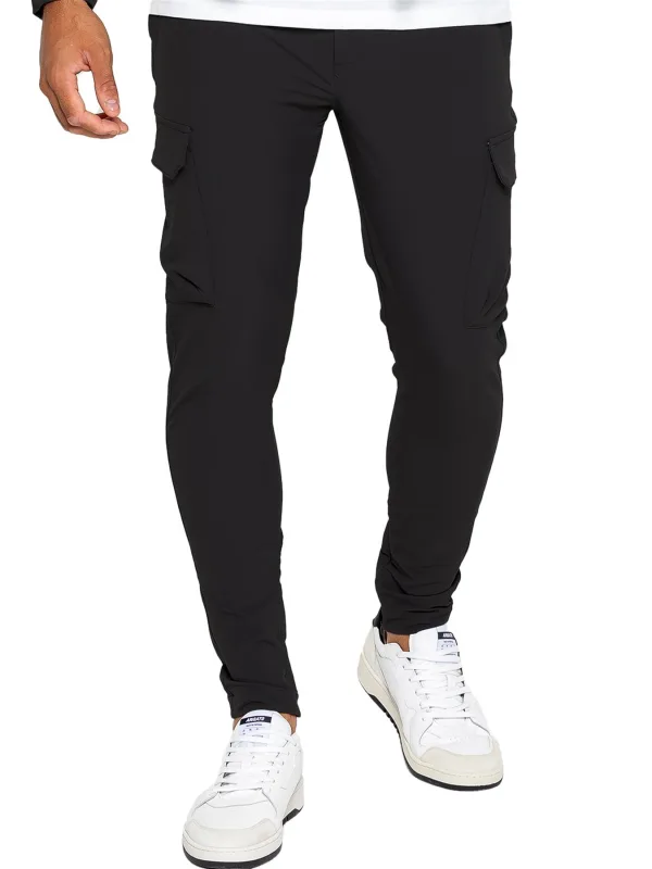 Cargo, straight leg, slim fit broek. Elastische tailleband met verstelbaar trekkoord. Twee schuine zijzakken met rits, één achterzak met paspel en twee externe cargozakken. Gemaakt van premium stretchmateriaal. Modern, stijlvol en comfortabel.