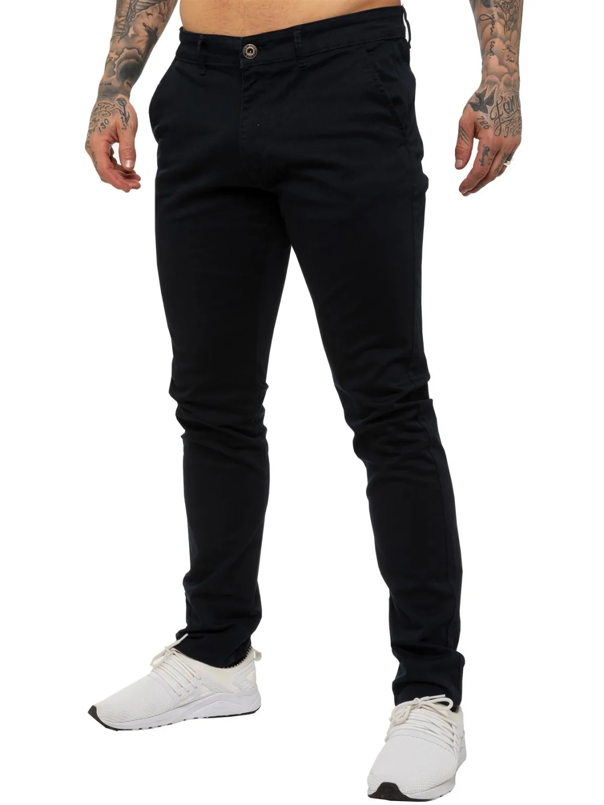 Enzo designer skinny stretch chino's voor heren. Magere stretch slanke pasvorm. 2 voorzakken, 2 achterzakken. Gulp met ritssluiting