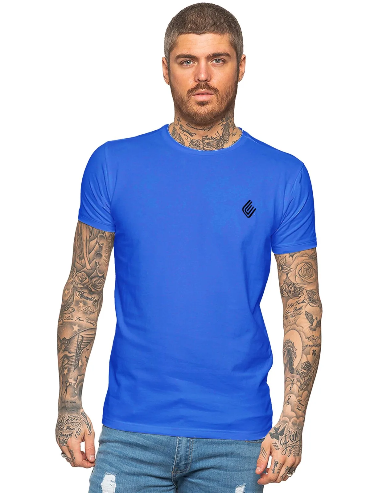 Enzo Designer Athletic Muscle Slim Fit T-shirt voor heren, extra stretchstof biedt comfort en past perfect op het lichaam, Enzo geborduurd logo op de voorkant, ronde hals en korte mouwen, 95% katoen, 5% elastaan, wasbaar in de machine en is ideaal voor Gym- en vrijetijdskleding.