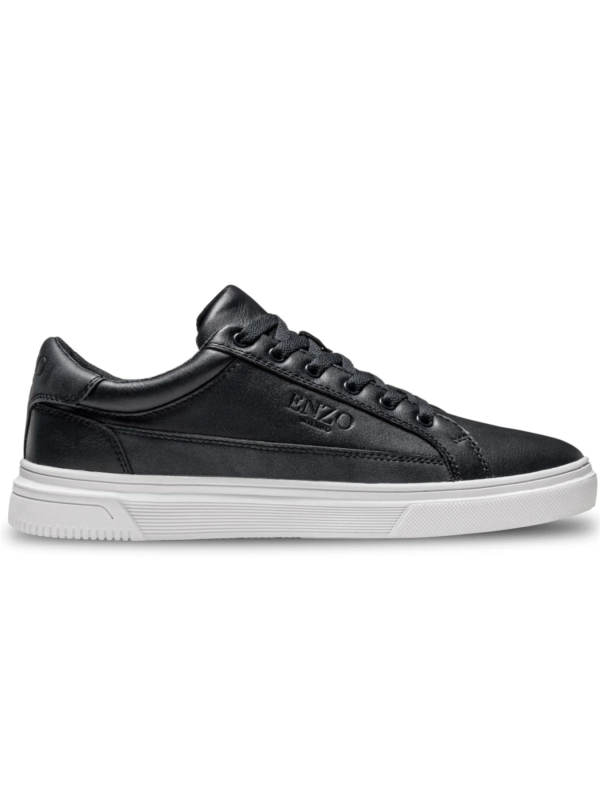 Breid je schoenencollectie uit met deze strakke en stijlvolle Enzo Men's Sienna Lace Up Sneakers. Gemaakt van synthetisch leer, bieden deze sneakers een verfijnde maar casual uitstraling, perfect voor elke gelegenheid. Belangrijke kenmerken zijn onder andere een duurzame rubberen zool voor verbeterde grip en comfort. Het ontwerp met veters zorgt voor een veilige pasvorm, en de gevoerde kraag en tong bieden extra demping. De Italiaanse vlag is ook geborduurd onder de tekst. Enzo Milano-branding aan de zijkant en een klein detail van de Italiaanse vlag verwijzen naar hun stijlvolle oorsprong.