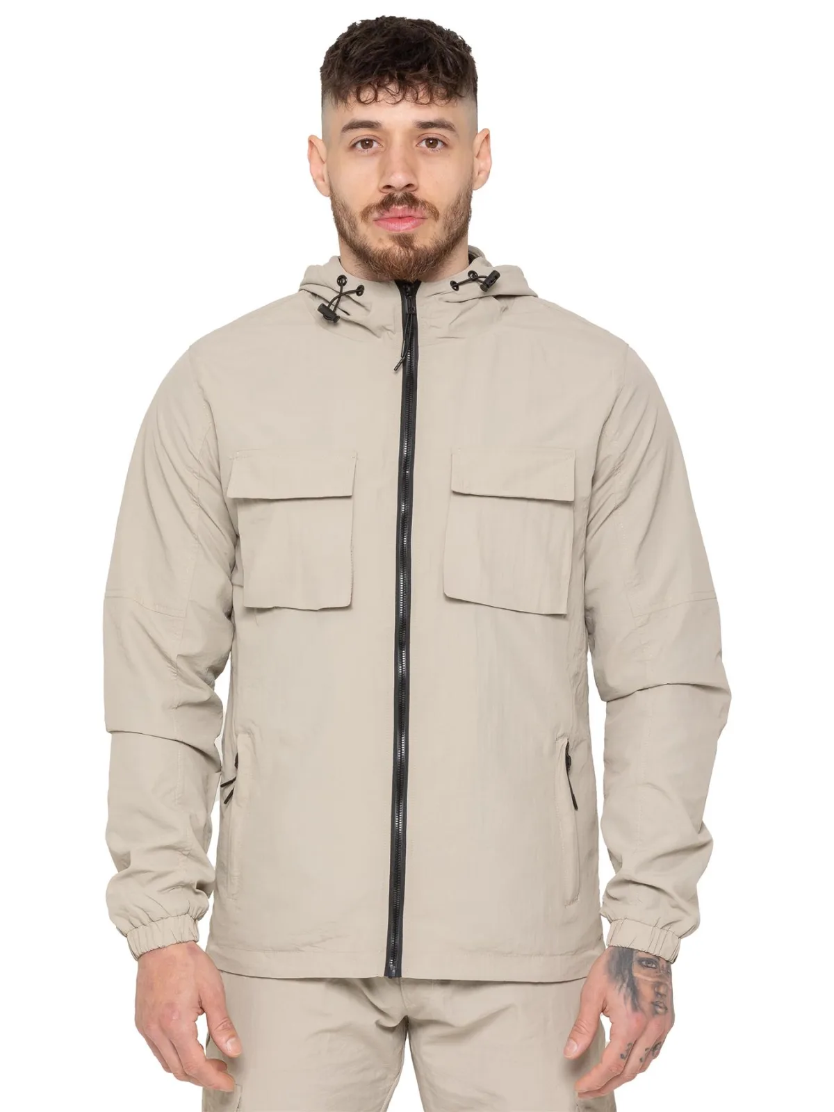 De Enzo Milano Men's Lightweight Cargo Jacket is een gestroomlijnde, functionele buitenlaag van waterafstotende crushed poly stof met een ademende mesh voering voor de hele dag comfort. De jas heeft een normale pasvorm, een volledige ritssluiting aan de voorkant, een hoge hals en een verstelbare capuchon met trekkoord voor veelzijdige bedekking. Met twee borstzakken met klittenband, twee zijzakken met rits, elastische manchetten en een verstelbare zoom met trekkoord, biedt hij zowel stijl als praktisch nut - perfect voor laagjes bij veranderend weer.