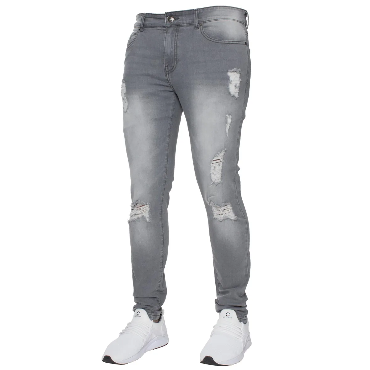 Enzo Heren Super Skinny Stretch Ripped Distressed Jeans met Ritssluiting. 2 Voorzakken, 2 Achterzakken en 1 muntzakje, Merkknopen en klinknagels.