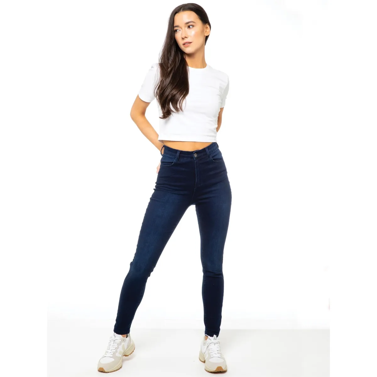 Enzo Womens Designer Skinny Stretch Jeans. Met 2 achterzakken, 2 voorzakken en een taille met knoopsluiting. Flex Denim voor de perfecte pasvorm. Ideaal voor casual of werkkleding