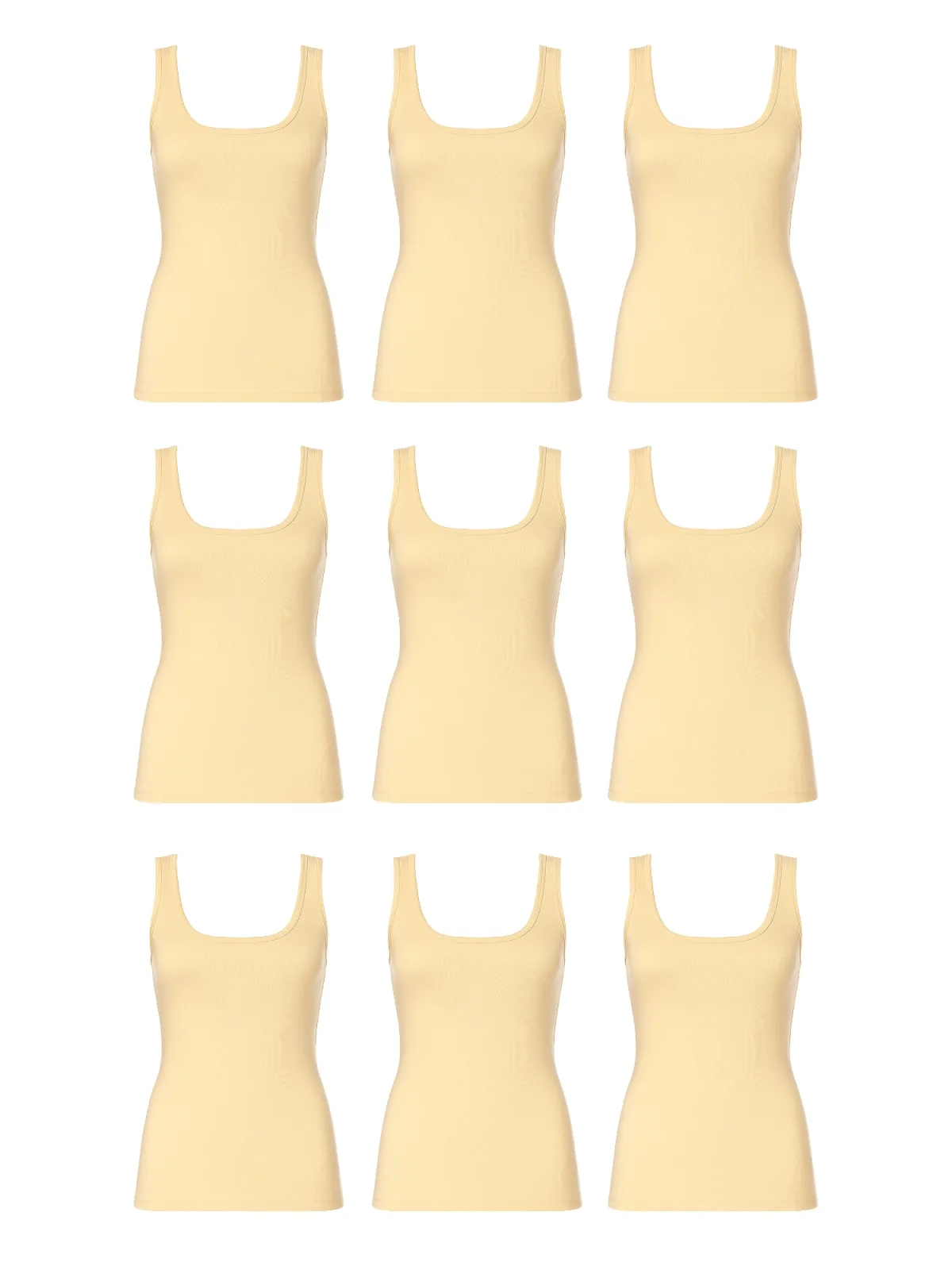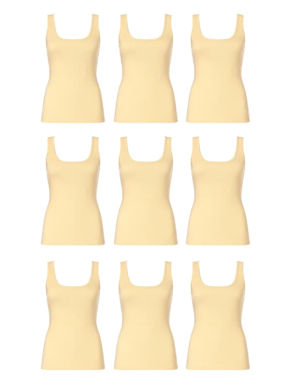 Design: Gevoerde zoom/rand; Materiaal: Jersey; Halstype: Ronde hals; Motief: Effen; Extra's: Voelt zacht aan; Aantal: 9 Pack; Armlengte: Mouwloos