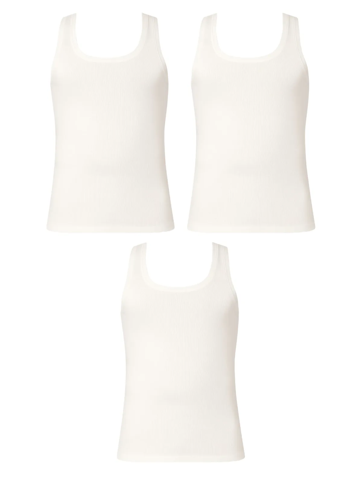Design: Gevoerde zoom/rand; Materiaal: Jersey; Halstype: Ronde hals; Motief: Effen; Extra's: Voelt zacht aan; Aantal: 3 Pack; Armlengte: Mouwloos