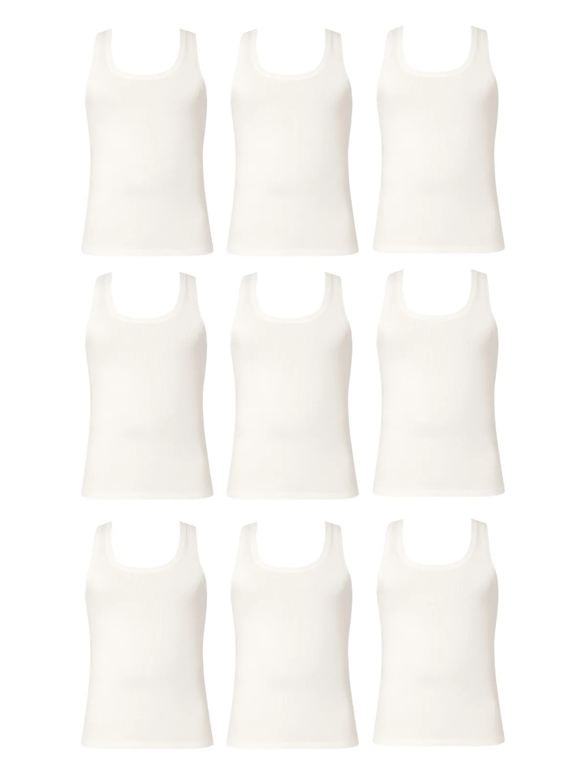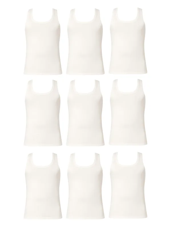 Design: Gevoerde zoom/rand; Materiaal: Jersey; Halstype: Ronde hals; Motief: Effen; Extra's: Voelt zacht aan; Aantal: 9 Pack; Armlengte: Mouwloos