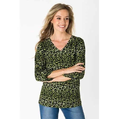 Deze top van ES&SY heeft driekwart mouwen en een V-hals. De top is gemaakt van viscose met elastaan, waardoor je veel bewegingsvrijheid hebt en de stof soepel aanvoelt.
