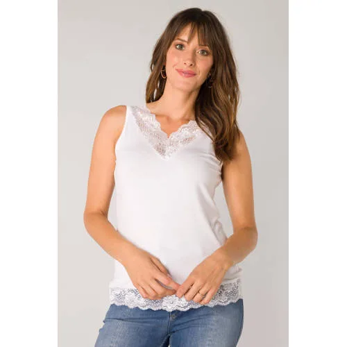 Deze top voor dames van ES&SY is gemaakt van een viscosemix. Het model heeft een V-hals en lange mouwen.details van deze top:kanten details