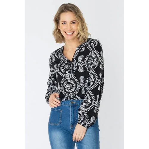 Deze top van ES&SY is speciaal voor dames ontworpen. Gemaakt van 100% viscose met lange mouwen. Met de knoopsluiting en V-hals biedt het een fijne look voor verschillende gelegenheden. Zakken ontbreken bij dit ontwerp.