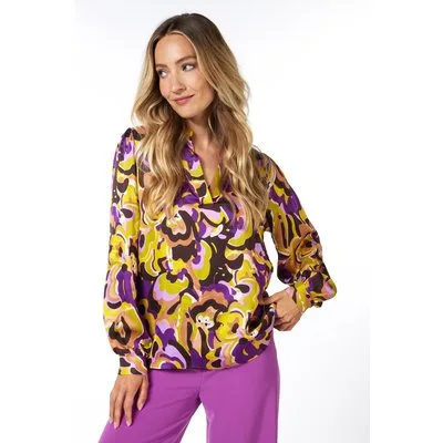 EsQualo Blouse Collar Fancy Earth Print Prijzen
