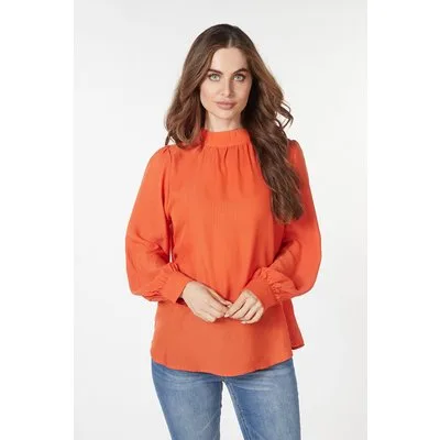 EsQualo Blouse Collar Gathering Red Clay Prijzen