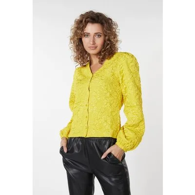 EsQualo Blouse Fancy Flower Jacquard Warm Olive