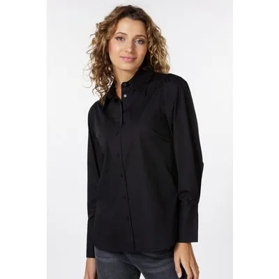EsQualo Blouse Fine Gathering Poplin Black Prijzen