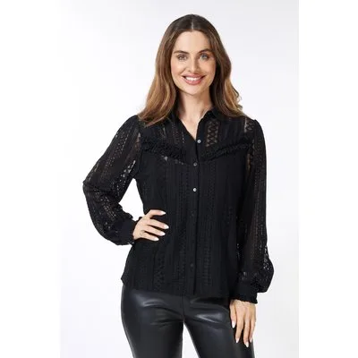 EsQualo Blouse Lace Puff Slve Black