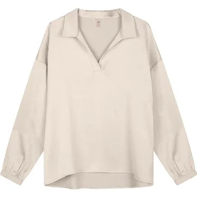 EsQualo Blouse Polo Structure Satin Off White Prijzen