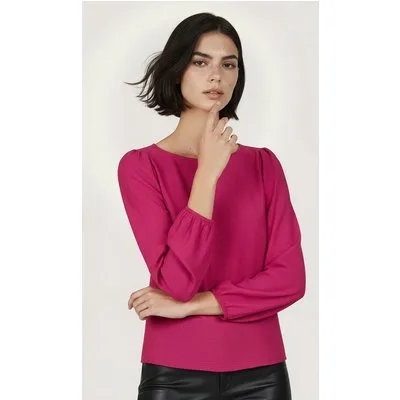 EsQualo Blouse R-neck Structure Fuchsia