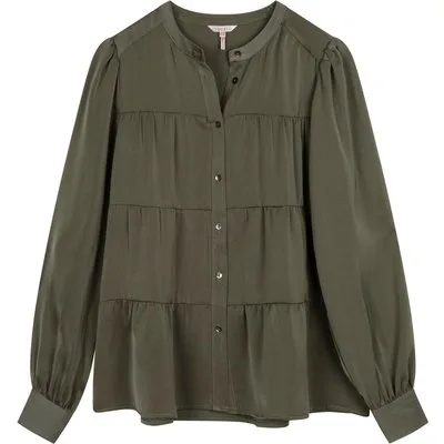 EsQualo Blouse Seams Sateen Leaf Green
