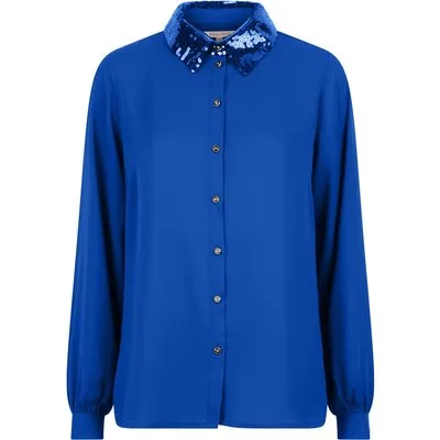 EsQualo Blouse Sequins Collar Blue Prijzen