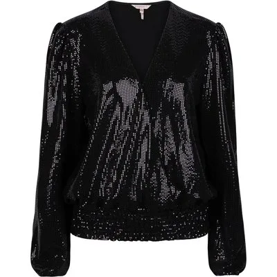 EsQualo Blouse Sequins Stretch Black