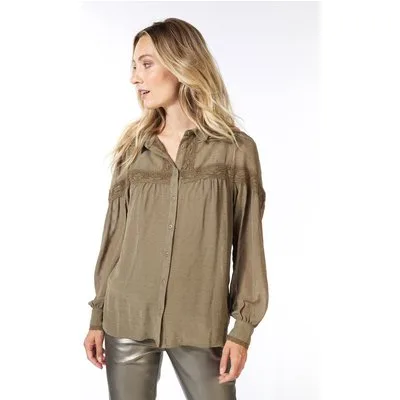 EsQualo Blouse Tapes Plumetis Army Green