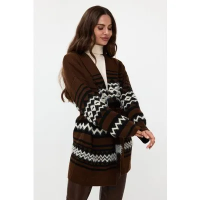 EsQualo Cardigan Hairy Ethnic Stripe Chocolate