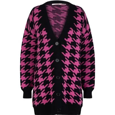 EsQualo Cardigan Houndstooth Jacquard Black / Pink