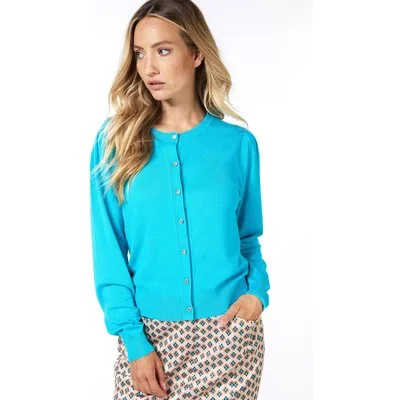 EsQualo Cardigan Puff Slve Basic Knit Peacock Blue