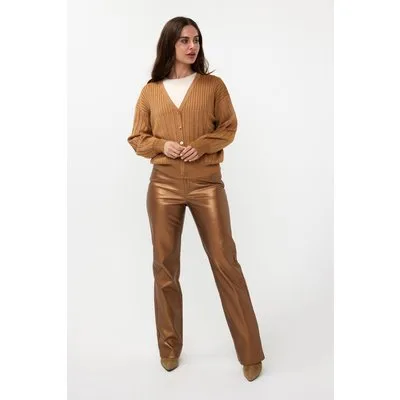 EsQualo Cardigan Rib Lurex Caramel