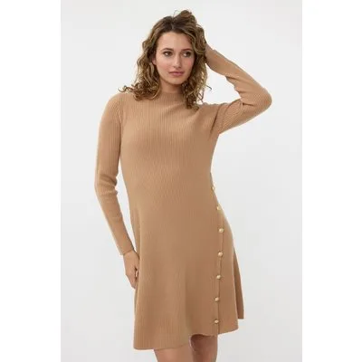 EsQualo Dress Rib Buttons Brandy