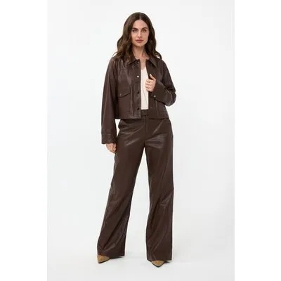 EsQualo Jacket Short Vegan Leather Chocolate Prijzen