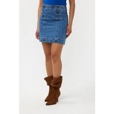 EsQualo Skirt Denim Buttons Jeans Blue